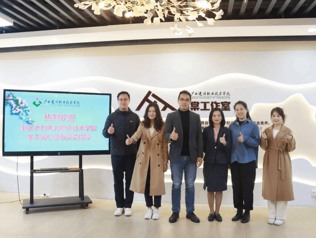 广西建院11月17日讯(管理工程学院 文/黄春 陈昭鑫 图/谢振业)11月16日,重庆水利电力职业技术学院“红色青年”辅导员工作室主持人侯晓玲、成员蒋姗姗2人到OD(中国)一站式服务平台就辅导员工作室建设进行调研交流。党委学生工作部副部长杨海基,管理工程学院党总支副书记、海棠工作室主持人郭海棠及海棠工作室骨干成员参加本次交流活动。