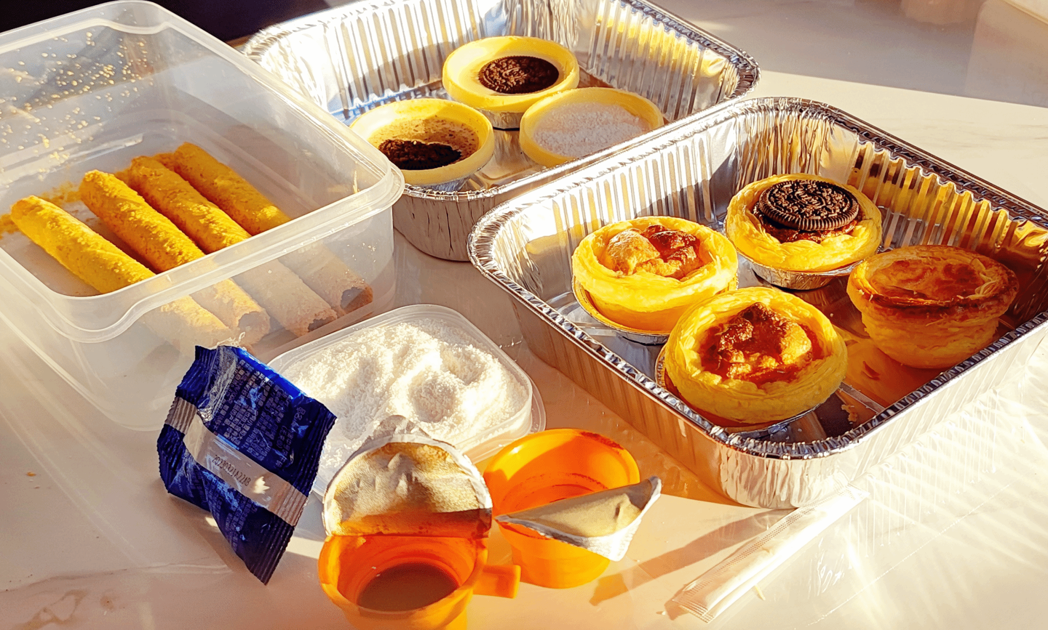 活动分为“认识澳门”“回归历程”“美食分享与制作”三项内容。黄小卜老师首先从澳门名称的由来、区徽区旗、地理位置、特色美食以及回归时间轴和今日澳门为大家做了介绍。随后详细讲解了如何制作蛋挞、蛋卷等澳门美食,并带领同学们现场调制蛋挞液及制作蛋挞。学习及制作过程中师生们认真专注、兴趣盎然,气氛欢乐。