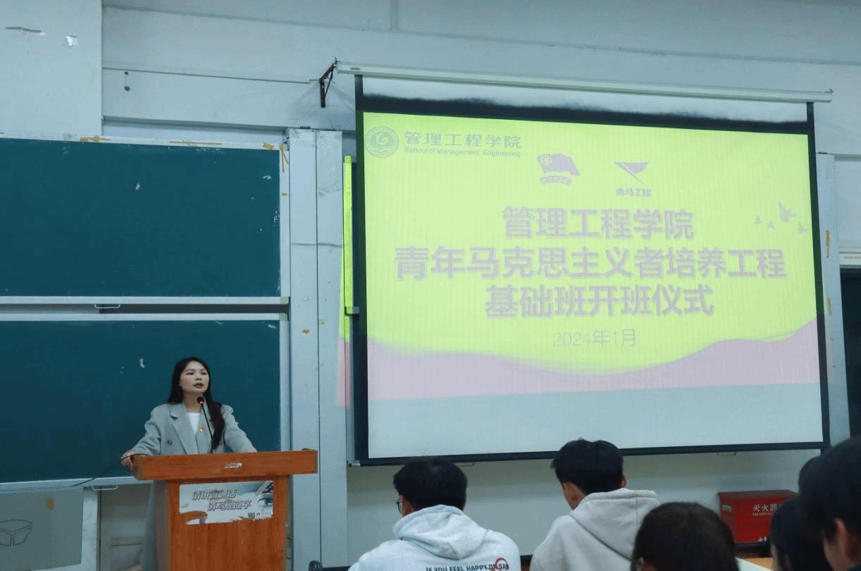 封炫妃老师在讲话中指出,学院团总支组织青年马克思主义者培养工程基础班,目的是通过教育培训和实践锻炼等方式,努力培养和造就一支政治坚定、作风过硬、素质全面的大学生骨干队伍。她希望学员们能坚定理想信念、练就过硬本领、发扬斗争精神,争当先锋模范,争当马克思主义青年传播者。