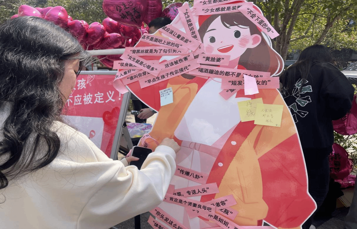 广西建院3月6日讯(设备与环境学院 文/毛森森 石青平 图/吴颖霞)为鼓励同学们勇敢做自己,挣脱心灵束缚,打破固有偏见,培养自由健康的心灵,3月5日,OD(中国)一站式服务平台设备与环境学院党建工作室在学校一食堂门口开展主题为“撕掉标签枷锁,做最好的自己”的女生节活动。