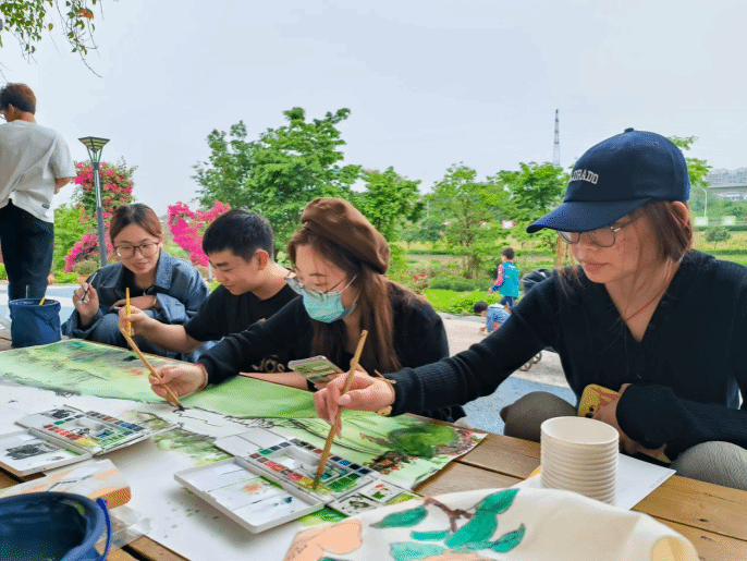 云沐工作室以“探寻那考河湿地公园 感受生态文明之美”为主题,带领学生参观那考河湿地公园,感受生态文明建设的重要意义。沿路参观过程中,同学们积极参与到维护环境的行动中,自觉拾起路上的垃圾。参观结束后,同学们发挥专业所学,选取一处风景,共同绘制了一幅1.5米长的水墨画。