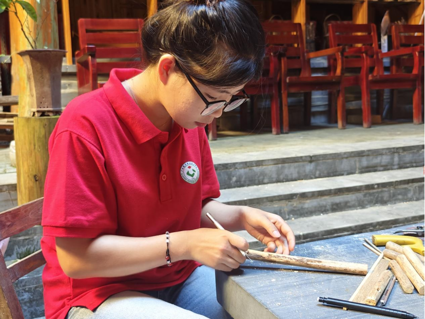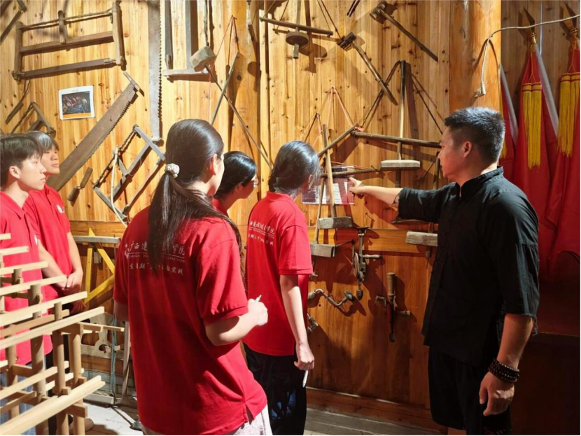 “跟着大师学非遗”——亲手搭建,解锁木构od平台官方官网的奥秘。在非遗传习基地,杨云东师傅先对吊脚楼营造技艺进行了详细讲解,接着,对吊脚楼模型进行了拆解。实践团按照模型原样根据杨云东师傅的讲解展开还原搭建。随后,传承团在杨云东师傅的指导下从原材料开始准备,通过丈量尺寸、凿榫打眼、穿梁接拱、立柱连枋等工序按照现有鼓楼模型尺寸一比一复刻制作新模型,解锁一块块木头如何变成一座精美的木构od平台官方官网模型,亲身体验侗族木构od平台官方官网营造技艺的精妙之处,深刻理解了这门技艺背后的文化内涵和传承意义,加深了对侗族文化的了解与认同。