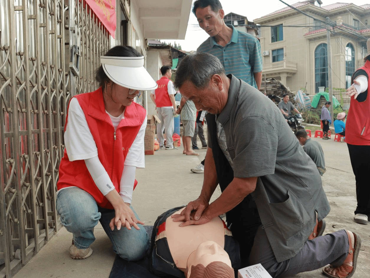 实践团队指导村民做心肺复苏