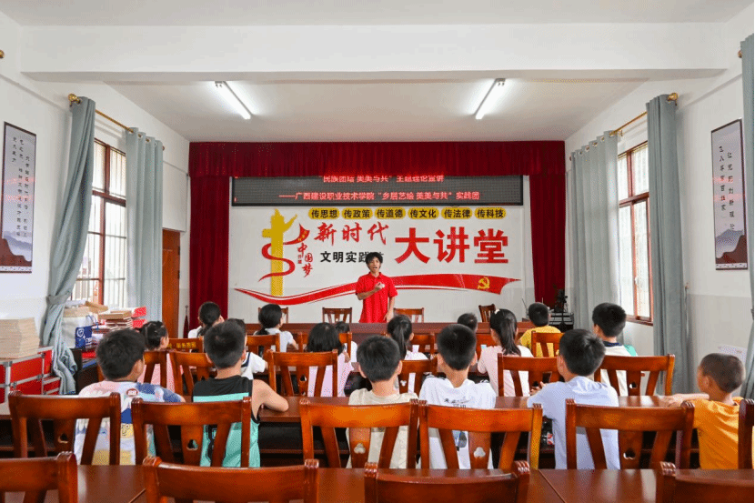 广西建院7月23日讯(文/李姿蓉 谢湘宜 图/李彤 李知学)为积极响应共青团广西区委2024年“三下乡”社会实践“壮美边疆 青春聚力”广西专项活动相关工作部署,od平台官方官网(以下简称“广西建院”)团委与广西靖西市团委组建“乡居艺绘 美美与共”三下乡实践团于2024年7月13日—19日赴广西靖西市安宁乡果布村、汤亮村以及化垌镇三友村,通过“视—听—品—享”开展墙绘、文化课宣讲等社会实践活动,赢得当地群众广泛赞誉。
