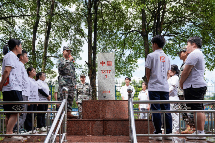 在1317国界碑前,同学们纷纷抒发自己的爱国情怀,一致表示要积极参与国防教育活动,为构筑坚不可摧的国家安全防线贡献自己的力量。退役复学的钟吉昌同学说:“虽退役,不褪志,手握钢枪时,那是职责与使命;复学携笔时,那是追求与理想。我将更加坚定爱国信念,用实际行动,在新的赛场上跑出加速度。”