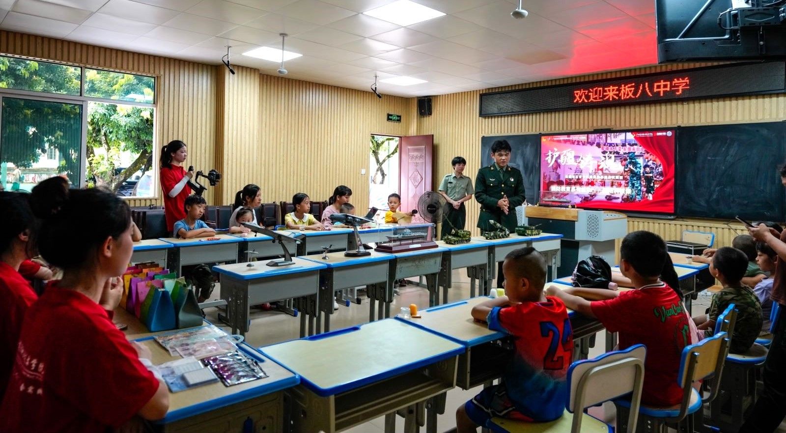 国防教育强民心,共筑爱国强军梦。“8.2环、9.1环、9.3环……”激光模拟射击系统播报着孩子们射击的成绩。他们手握“枪械”,模拟实弹射击,有模有样。在军事模型前,实践团成员为同学们讲解各类武器装备,普及国防知识。同学们听得津津有味,对国家军队建设和先进装备赞不绝口。退役复学大学生们还通过CPR设备演示、无人机操控、单兵技战术演练等,传授战地救护、自卫防身、预防空中打击等实战技能,帮助边民们进一步掌握了求生救护技能和实战应用的守边本领。