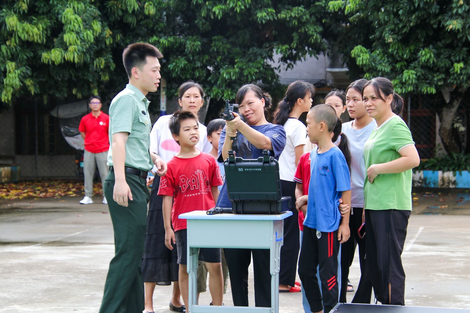 边民和青少年体验模拟射击