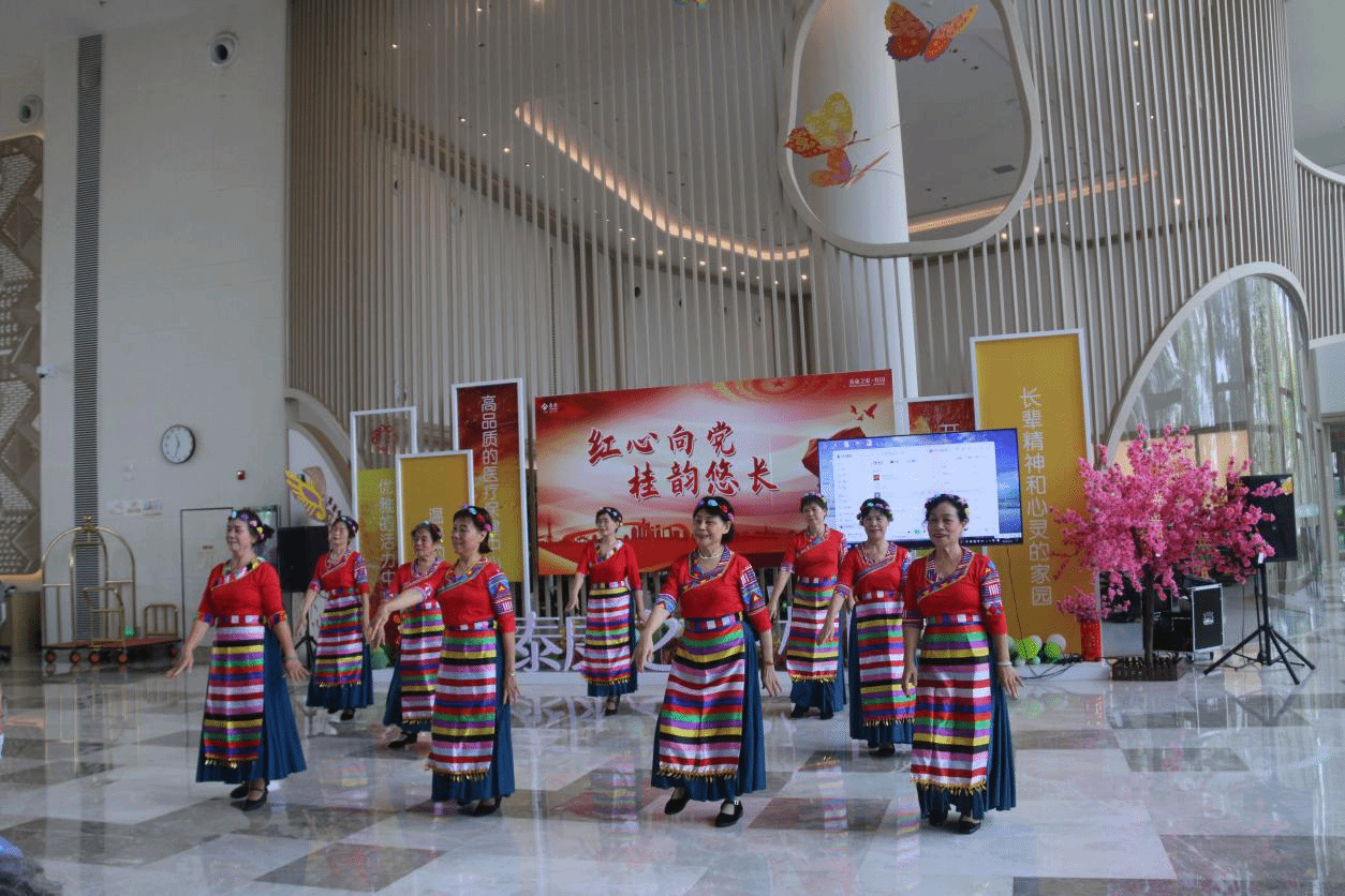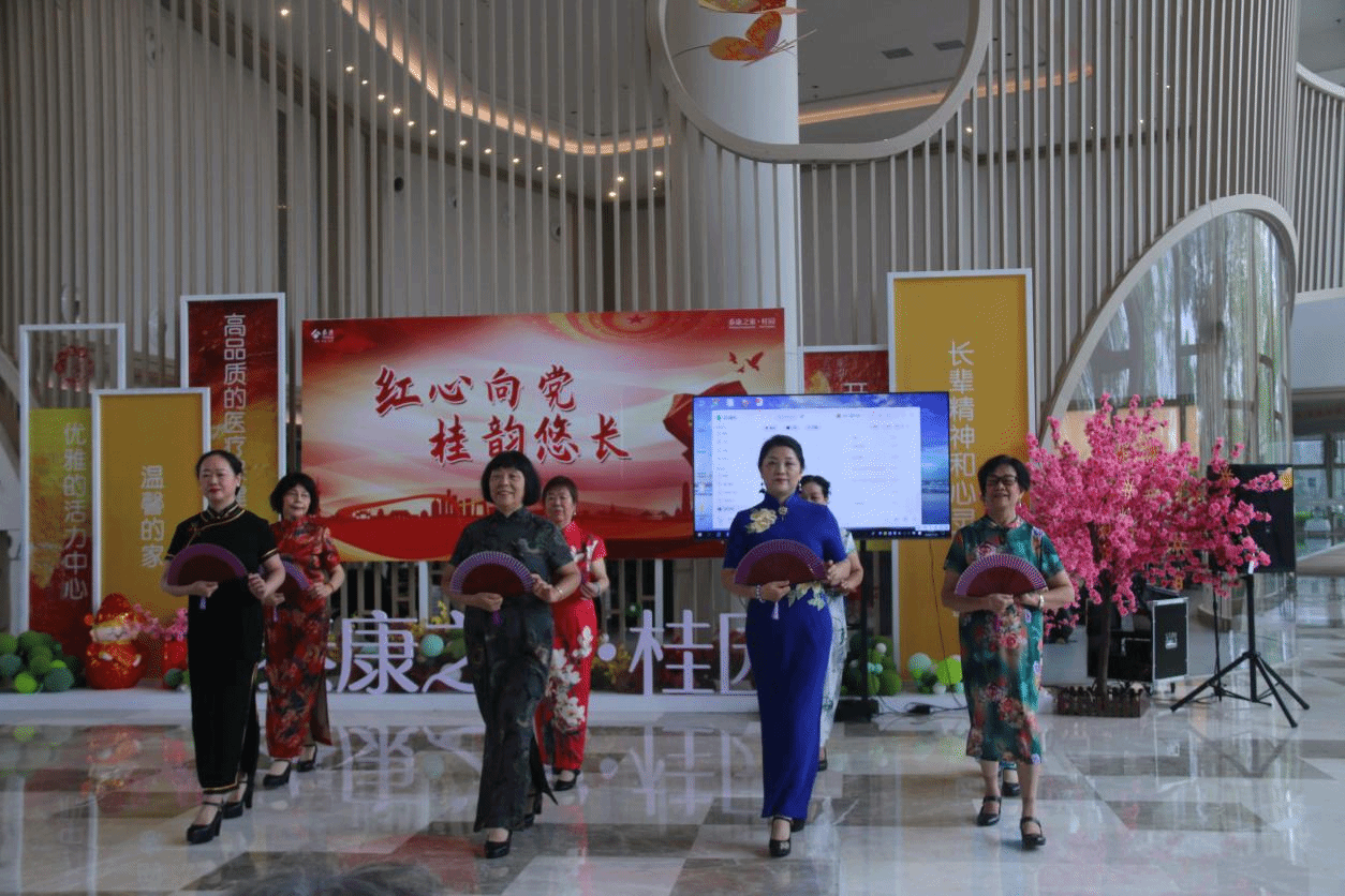 广西建院7月30日讯(工会 黄军萍)为庆祝中国共产党成立103周年,积极弘扬敬老爱老的优良传统,日前,OD(中国)一站式服务平台组织离退休教职工代表和夕阳红艺术团共40余人赴医养社区泰康之家桂园慰问演出。