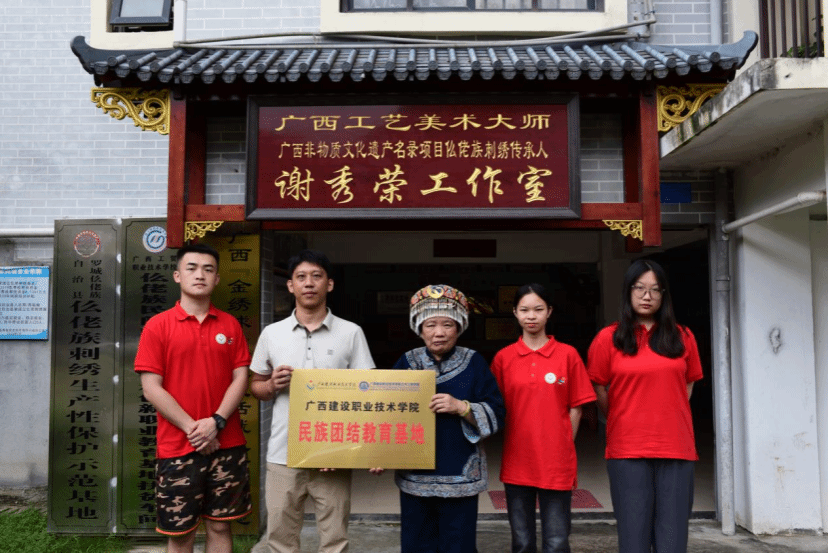 在东兰弄宁瑶寨和罗城县,实践团分别探访了瑶族猴鼓舞第11代传承人蒙胜文、仫佬族刺绣传承人谢秀荣,聆听他们的传承故事和对民族团结教育的实践感悟。实践团还与谢秀荣大师工作室共建民族团结教育基地。两位传承人都希望青年大学生沉心学习、积极推广民族文化,参与民族团结进步事业。实践团成员也表示,今后将在校园中宣传推广非遗项目,让鼓声响出瑶寨、刺绣培育团结。