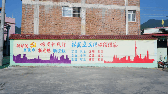 为了让移风易俗理念深入人心,营造积极向上的乡村氛围,实践团来到西江村开展“移风易俗”主题实践活动,一是绘制移风易俗主题墙,搭建宣传教育新阵地,利用图文形式展现移风易俗内容,实现乡村风貌和乡村文明“双提升”;二是入户宣讲乡村振兴和移风易俗政策内容,引导村民主动做传播文明新风的有力践行者。