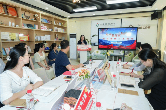 广西建院9月10日讯(管理工程学院 文/宋景弘 封炫妃 图/宋景弘)9月10日下午,管理工程学院在海棠工作室召开教育家精神学习分享会,会议聚焦教育家精神的弘扬与践行,探讨青年教师如何以高质量发展助力教育强国。全国模范教师文桂萍教授,学院党总支书记代端明、副书记郭海棠出席会议,学院全体学生工作人员参会。