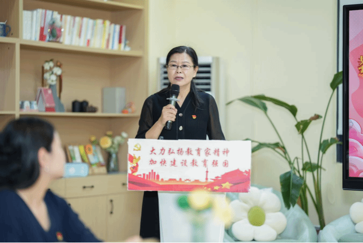文桂萍教授与郭海棠副书记向老师们颁发学习教育家精神摆件,现场交流热烈氛围浓厚。