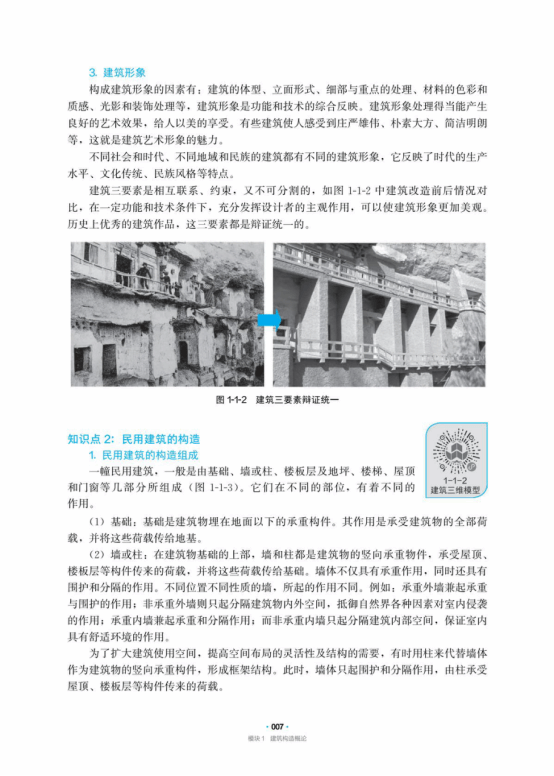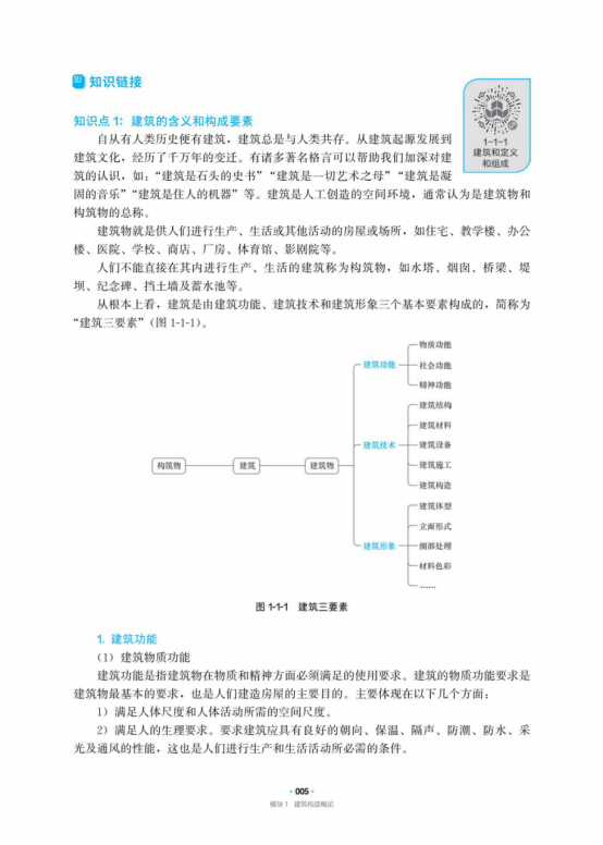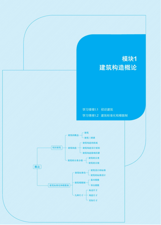 每个教学模块均配备思维导图,逻辑清晰,结构层次分明,结合《民用od平台官方官网设计统一标准》GB 50352- -2019、 《 od平台官方官网模数协调标准》GB/T 50002- 2013、 《 变形缝构造》11ZJ111、《od平台官方官网地基基础设计规范》GB 50007- 2011 等国家现行标准规范、图集,尽可能反映工程生产中的新材料、新技术和od平台官方官网发展新动态,涵盖民用od平台官方官网工程中涉及的常用od平台官方官网构造类别,并增加了目前工程中应用较多的工程构造做法。