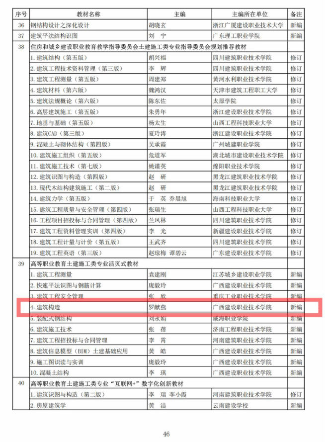 教材编写团队是一支师德高尚、专业扎实、结构合理的教师队伍,获评广西高等职业学校课程思政示范基层教学组织。编写团队15人,高级职称7人,均为广西教育厅认定的“双师型”教师,国家级教师教学创新团队骨干成员2人,广西黄大年团队骨干成员、国家模范教师1人,参编学校2个,企业参编人员2人,企业副主编为一级注册结构、岩土工程师。具有丰富的教学与实践经验,深度参与职业教育教材开发及行业标准制定。