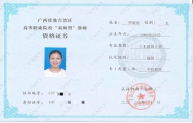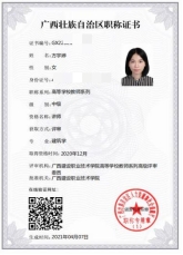 教授职称证书 | 广西高校职业院校高级双师型教师资格证书 |