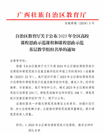 5.2 教材支撑课程2021年获自治区级课程思政示范课程(思政助力)