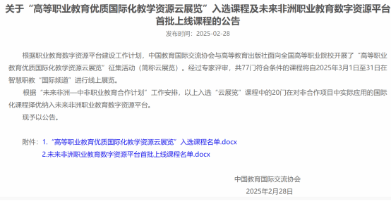 2.4 “高等职业教育优质国际化教学资源云展览”入选课程