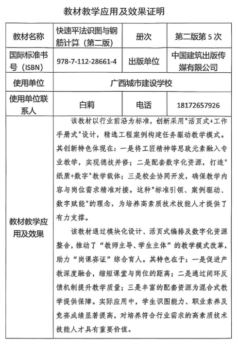 4.2.3 广西水利电力职业技术学院教材应用及效果证明