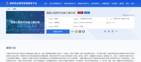 5.4教材配套课程《混凝土结构平法施工图识读》开课平台