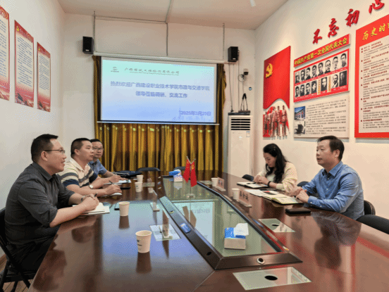 在柳州铁路工程质量检测中心有限公司,黄文珑副院长与杜敏君总经理就公司发展历程、行业发展、企业用人需求以及课程设置、实习实训等方面进行了深入交流。杜敏君总经理详细介绍了公司工程质量检测行业的现状与发展趋势,结合自身业务板块提出了企业人才选拔和培养方面的具体要求和期望,围绕建设契合企业未来需求发展促进专业课程体系构建分享了几点思考。黄文珑副院长结合学院专业优势和教学资源,阐述了我院在人才培养模式上的创新举措和特色,指出了双方在课程开发、实训基地共建、人才联合培养等方面具有很多合作的方向。