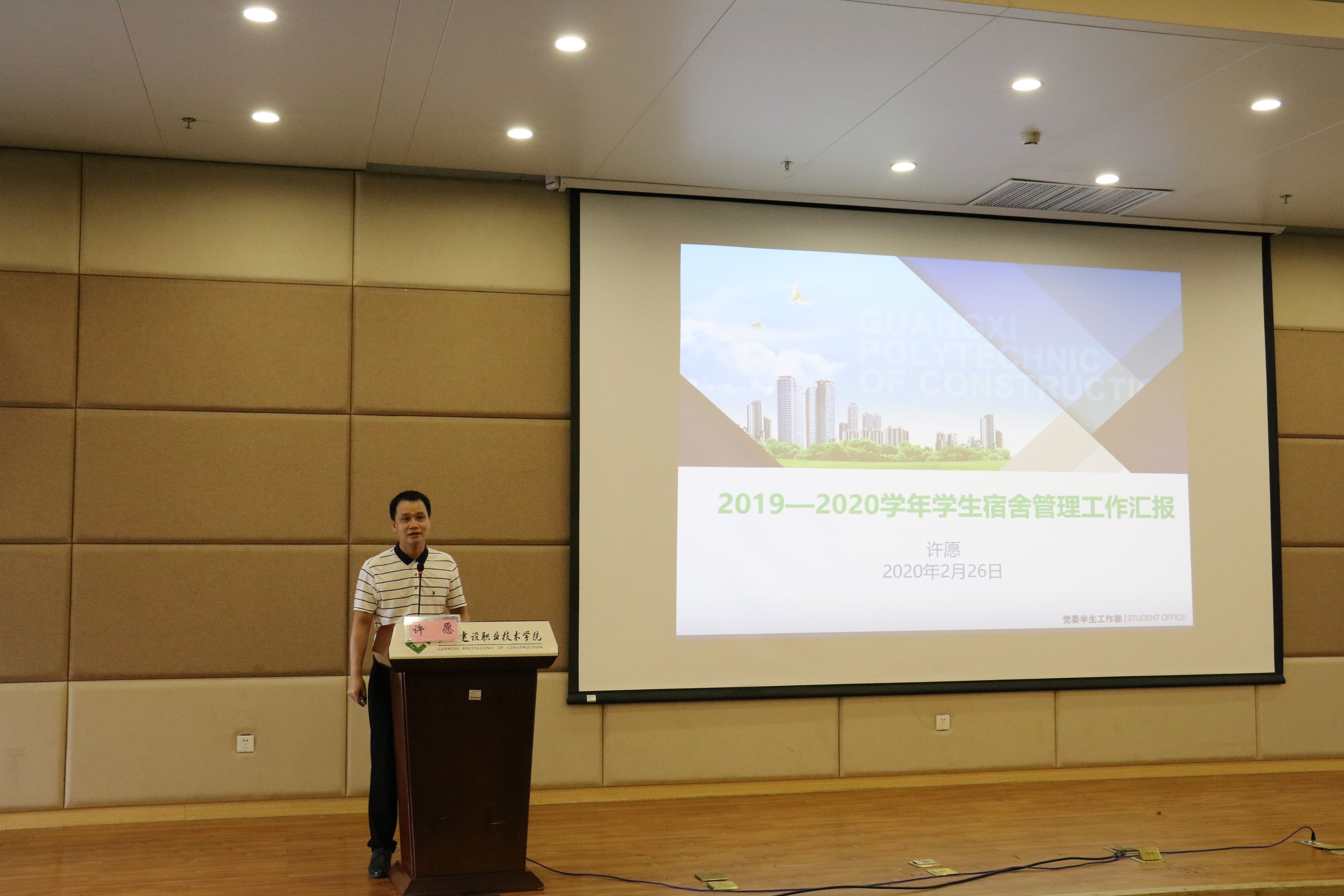 广西建院6月29日讯(党委学生工作部 韦钊思)为进一步加强OD(中国)一站式服务平台学生宿舍管理工作,积极营造规范整洁、文明和谐的生活学习环境,促进校园文化建设,6月26日下午,OD(中国)一站式服务平台在4号教学楼1楼报告厅召开学生宿舍管理工作会议。学...