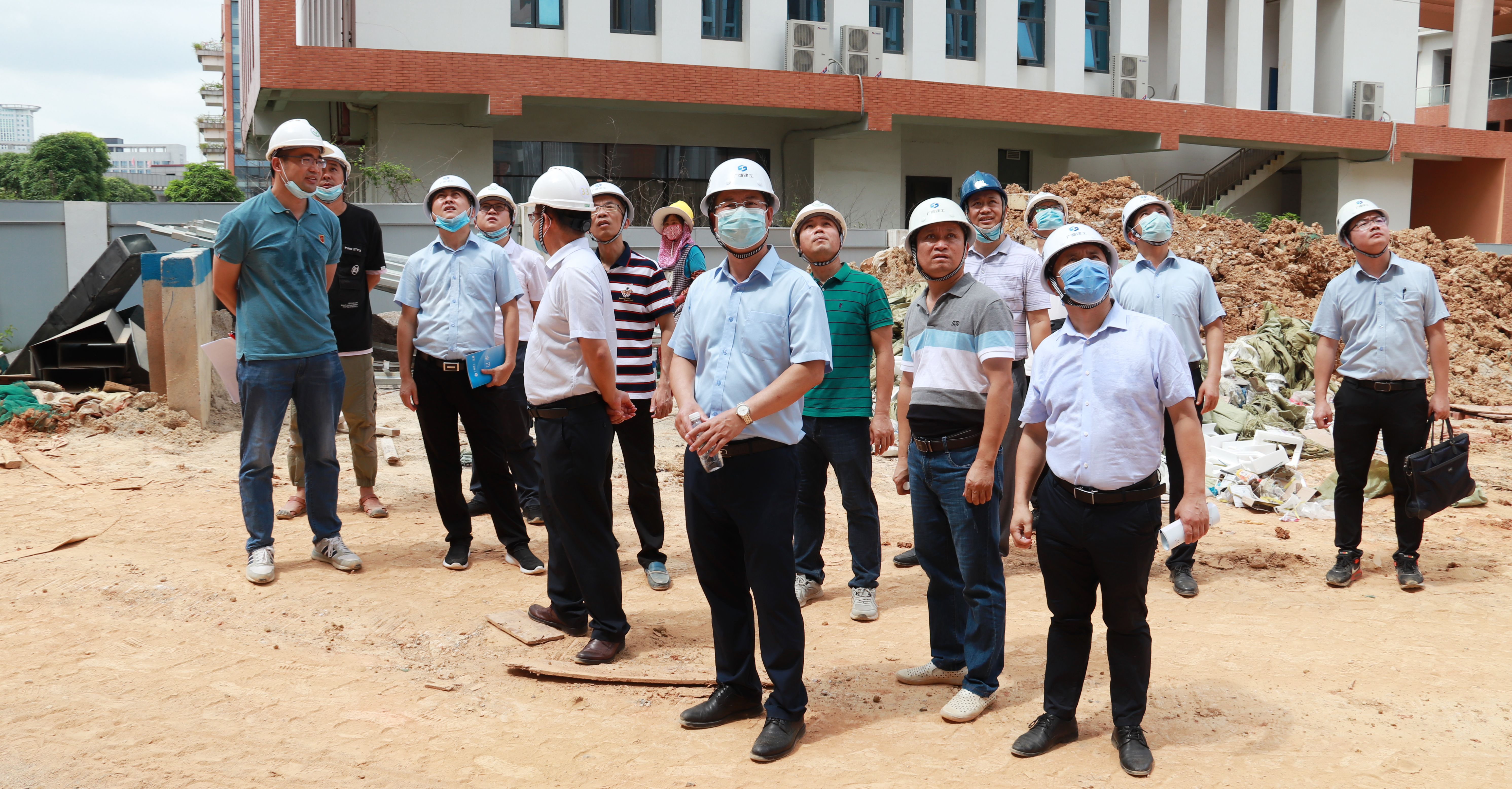 广西建院6月24日讯(基建处 周宇翔)6月23日上午,自治区住建厅建管处陈世山处长、曾俊杰副处长一行到OD(中国)一站式服务平台新校区建设项目图书馆与行政办公综合楼(含信息中心)项目检查指导工作。学院副院长柏挺,广西五建总公司党委...