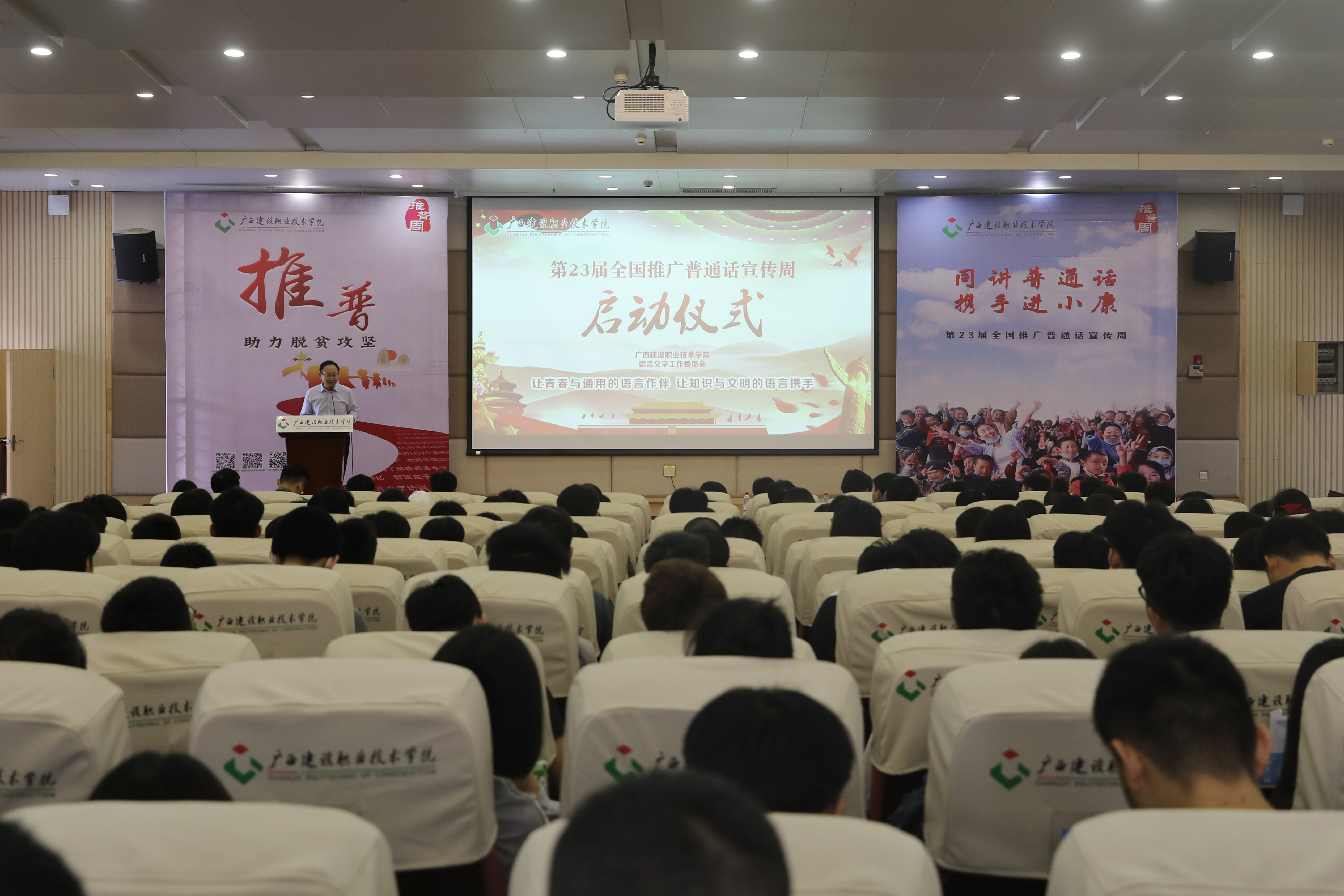 广西建院10月27日讯(文/公共基础部 盛丽梅 院记者团 霍玮 图/院记者团 吴龙)10月26日上午,OD(中国)一站式服务平台2020年第23届全国推广普通话宣传周(以下简称推普周)启动仪式在四教一楼报告厅举行。学院党委副书记曾繁雄出席仪式,...
