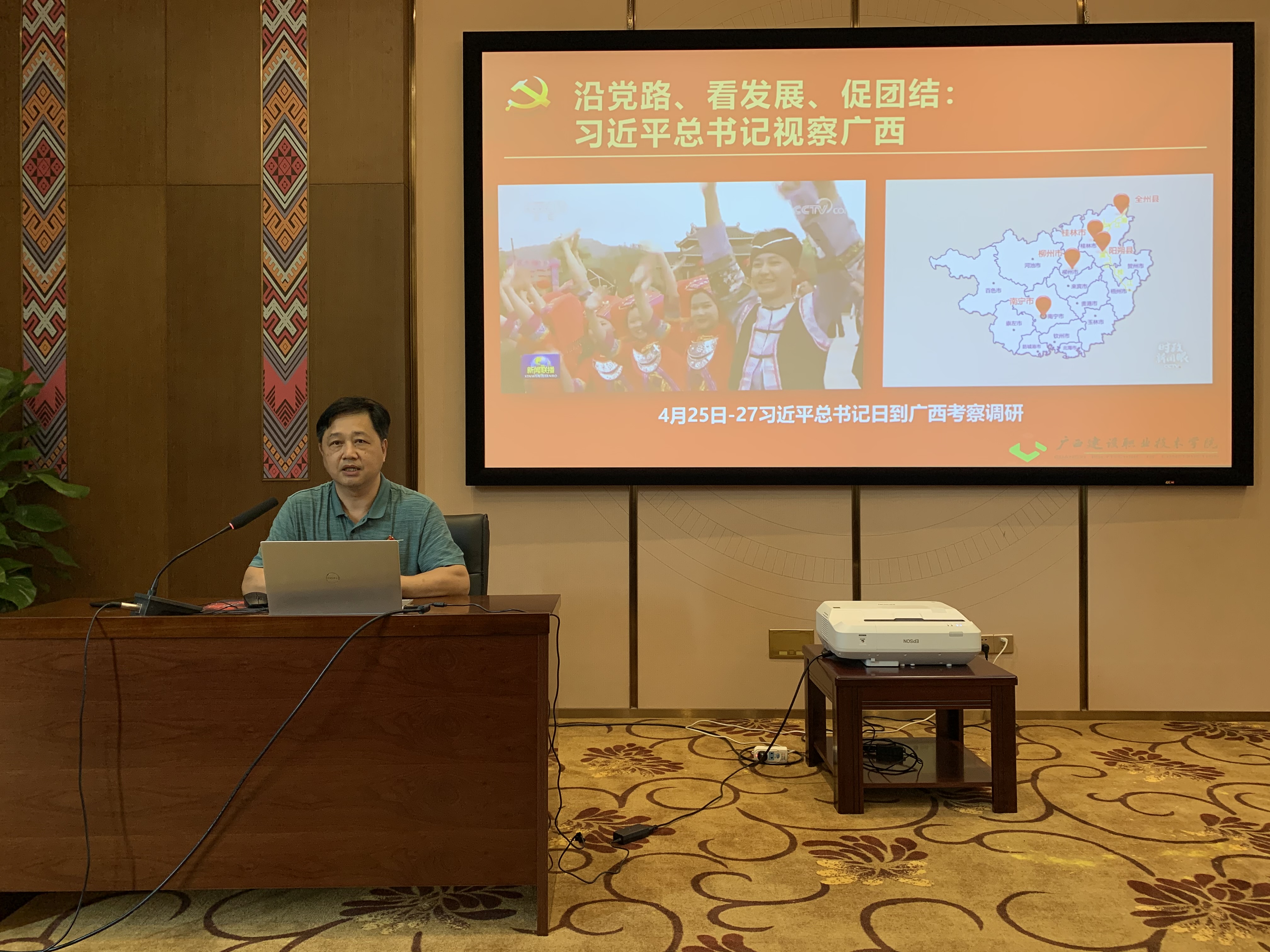 广西建院5月11日讯(马克思主义学院 文/莫玉婵 图/毕莉)为学习贯彻习近平总书记在党史学习教育动员大会上的重要讲话精神,进一步增强党组织凝聚力、号召力和战斗力,5月11日下午,学院党委副书记曾繁雄在一教1...