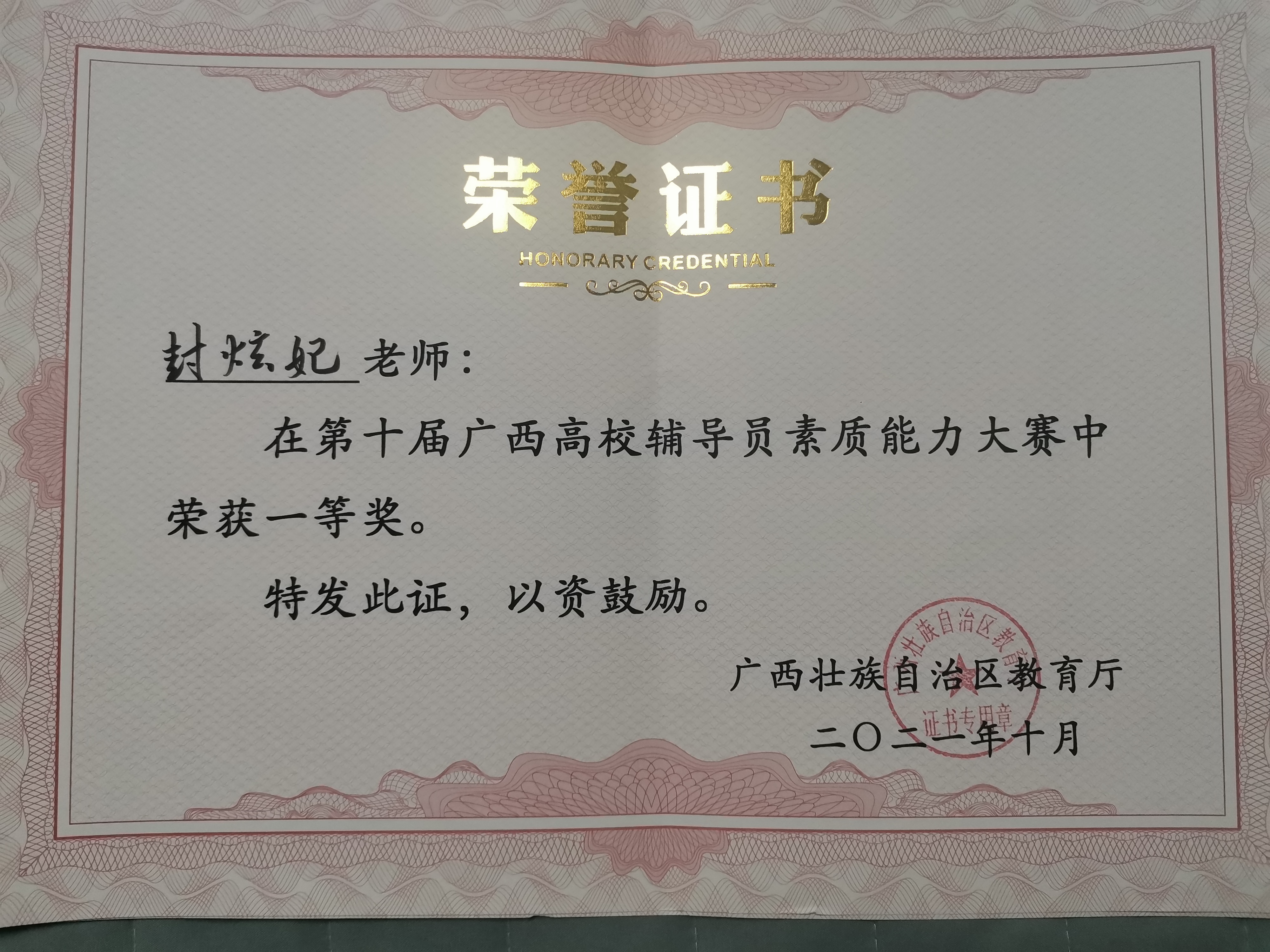 广西建院10月24日讯(管理工程学院 郭海棠)10月20日至22日,第十届广西高校辅导员素质能力大赛在广西师范大学顺利落下帷幕,OD(中国)一站式服务平台管理工程学院辅导员封炫妃、od平台官方官网与规划学院辅导员冯光帆双双荣获大赛一等奖,其中封炫...