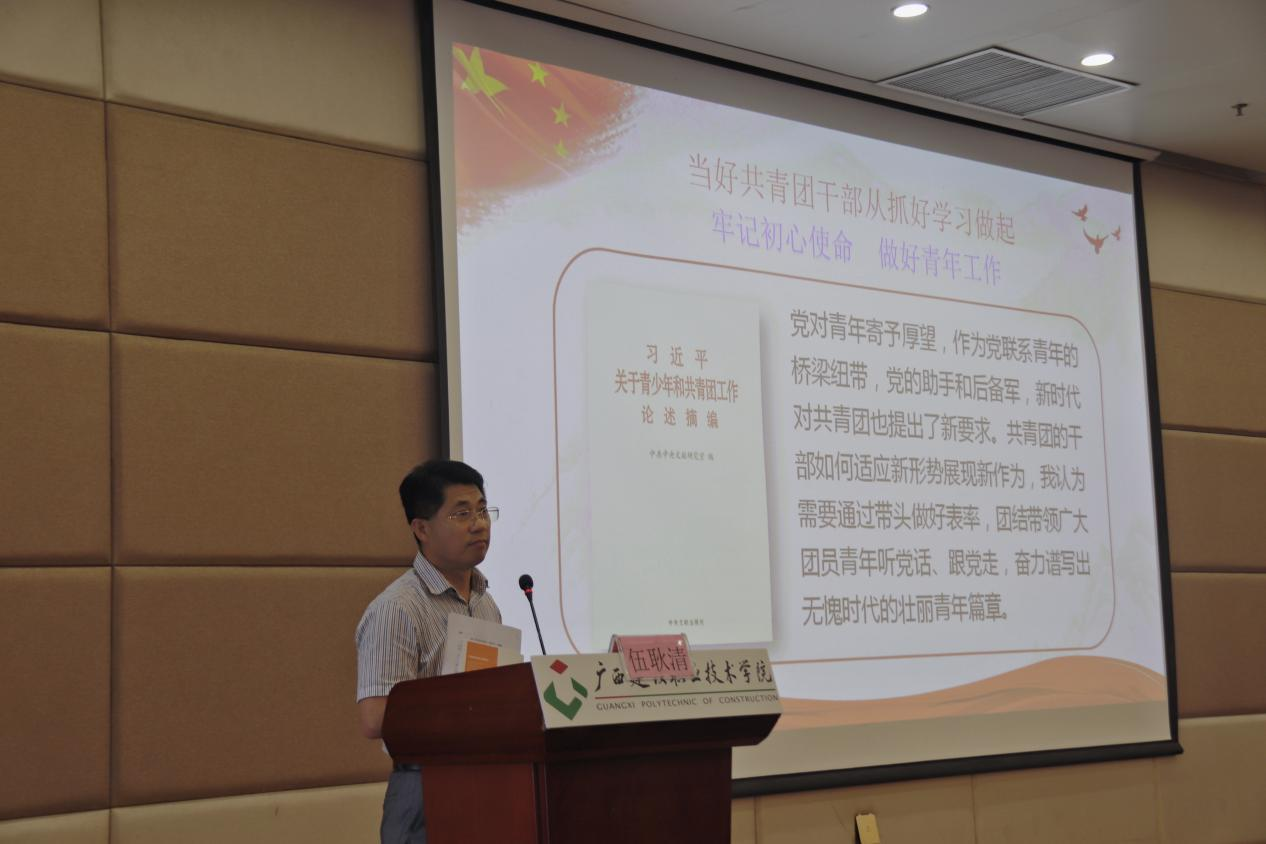 广西建院5月5日讯(土木工程学院 文/叶冬梅 韦东余 图/卢玉婷 )为进一步加强我院团干部队伍建设,提高基层团干部的综合素质和工作能力。4月26日下午,学校副校长伍耿清在四教一楼报告厅为土木工程学院...