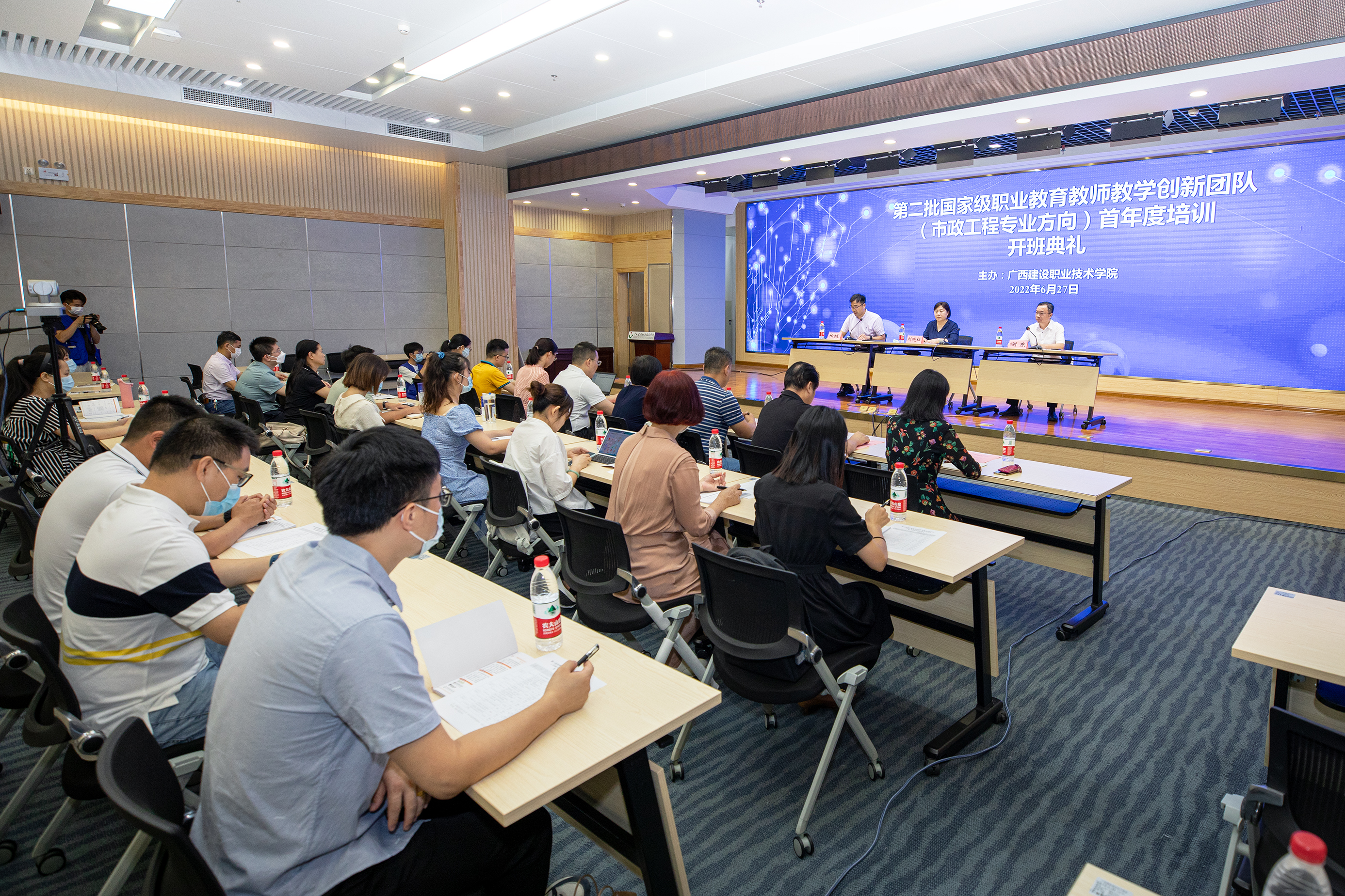 广西建院6月27日讯(文/党委宣传部 陈熙 图/宋景弘 记者团 李桂林 梁承永)6月27日上午,第二批国家级职业教育教师教学创新团队(市政工程专业方向)培训研修班开班典礼在OD(中国)一站式服务平台四教二楼报告厅举办。学校党委书记刘晓红...