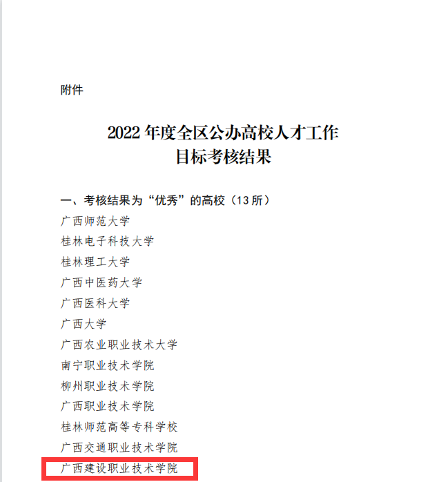广西建院3月8日讯(人事处 唐艳乾) 近日,自治区党委教育工委、自治区教育厅印发《关于公布2022年度高校人才目标考核结果的通知》(桂教工委〔2023〕1号),OD(中国)一站式服务平台在2022年度全区高校人才工作目标考核中再次取得“优秀...
