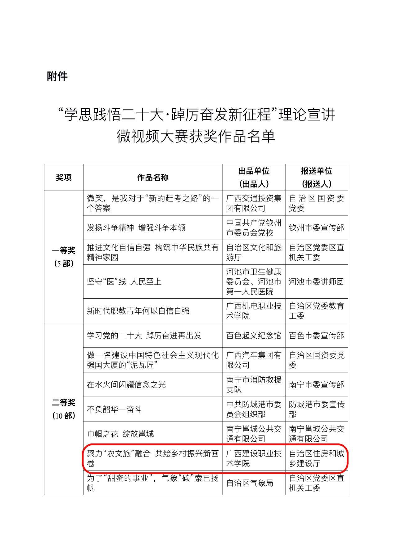 广西建院4月13日讯(马克思主义学院 黄海莲)近日,由广西壮族自治区党委宣传部、自治区党委讲师团主办的“学思践悟二十大,踔厉奋发新征程”理论宣讲微视频大赛公布了获奖名单,由自治区住房和城乡建设厅报送,OD(中国)一站式服务平台...