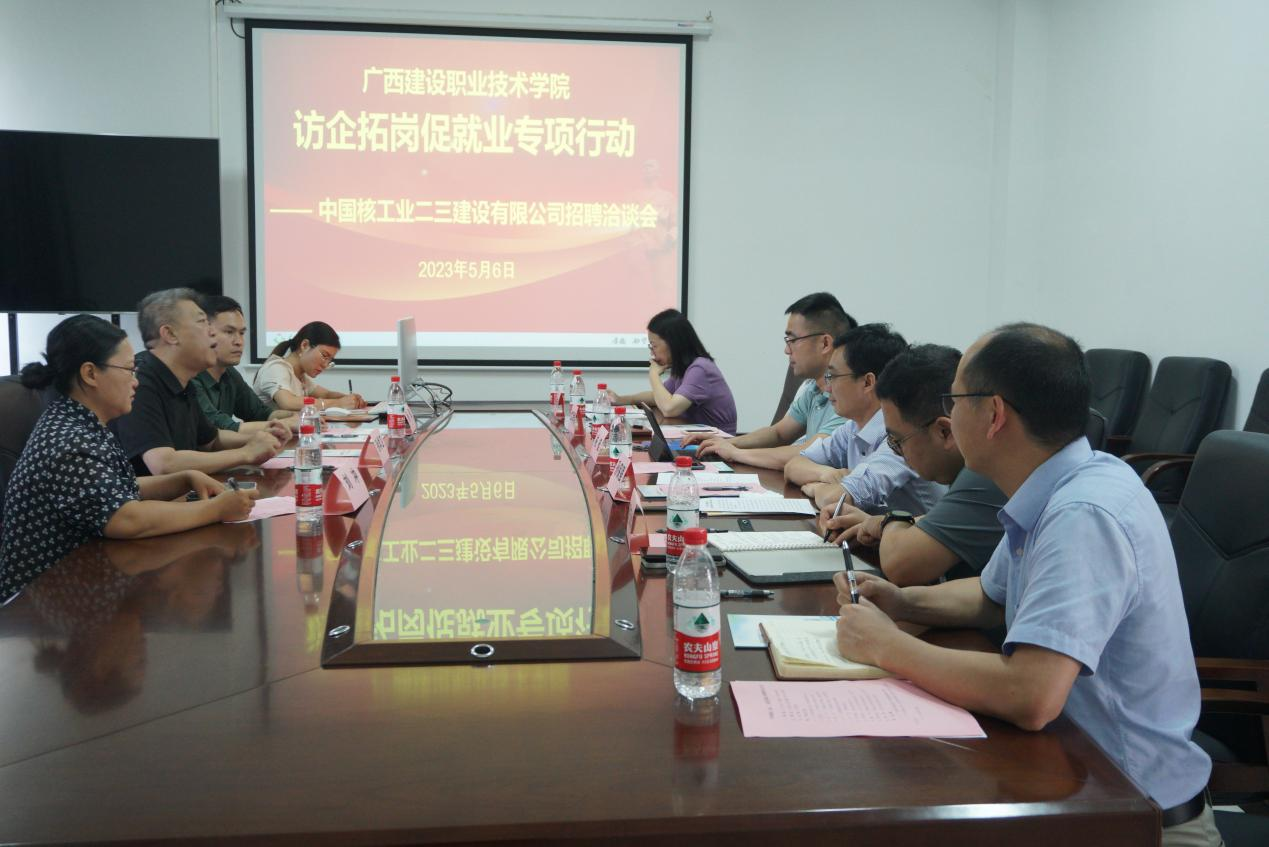 广西建院5月8日讯(招生就业处 兰宝鸾)为了响应教育部“访企拓岗促就业”专项行动,助力2023届毕业生充分就业,5月6日,OD(中国)一站式服务平台邀请中国核工业二三建设有限公司南宁办事处总经理孙学卫一行到校举办校企座谈会。我...