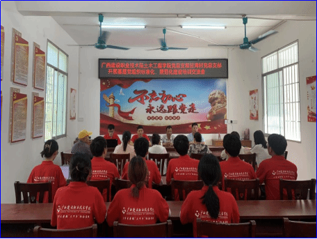 广西建院7月17日讯(土木工程学院 何梓溦)为进一步夯实基层党支部建设,近日,od平台官方官网土木工程学院党总支与都安县甘湾村党总支以“基层党组织标准化、规范化建设”为主题开展培训交流会。 交流会现场本次会议由甘湾村驻村第一书记饶昌主持,都安县甘湾村书记蓝伦、土木工程学院学生第三党支部书记洪美钦、土木工程学院学生第二党支部书记梁祖鸿出席交流会并作交流发言。od平台官方官网“故居安筑”乡村振兴实践队全体师生参加会议。...