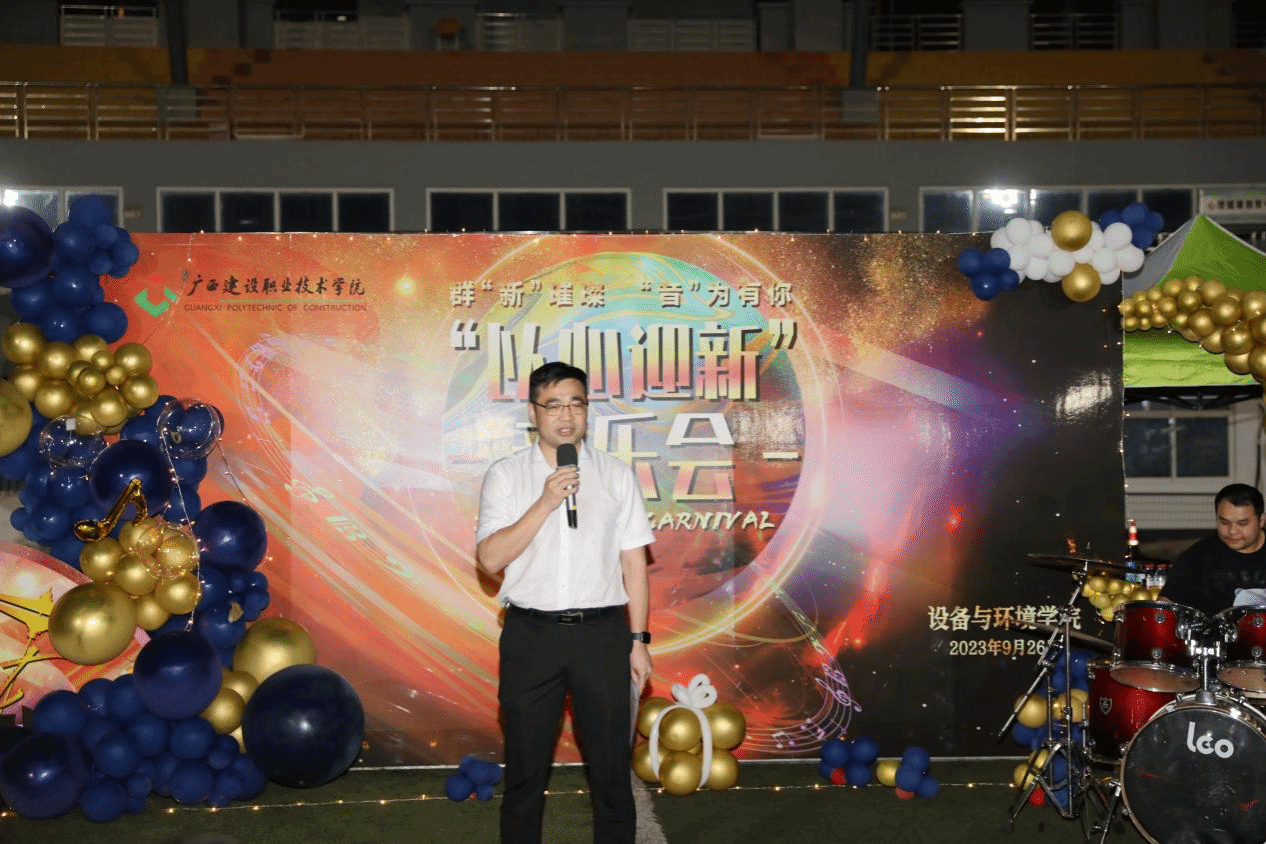 广西建院9月27日讯(设备与环境学院 文/贤冰冰 图/杨贵维 唐元庭)为丰富校园文化生活,展现青春激昂风采,迎接2023级新生们的到来,由设备与环境学院主办、设备与环境学院学生党支部承办的“以心迎新”音乐会于9月26日晚在学校田径场超燃上演,为师生带来了一场精彩纷呈的音乐盛宴。晚上19时,音乐会在学校舞狮队的表演中拉开帷幕。学校副校长柏挺为音乐会致辞,对2023级新生表示热烈欢迎并寄予殷切期望。柏挺副校长勉励同学们将青春之“...