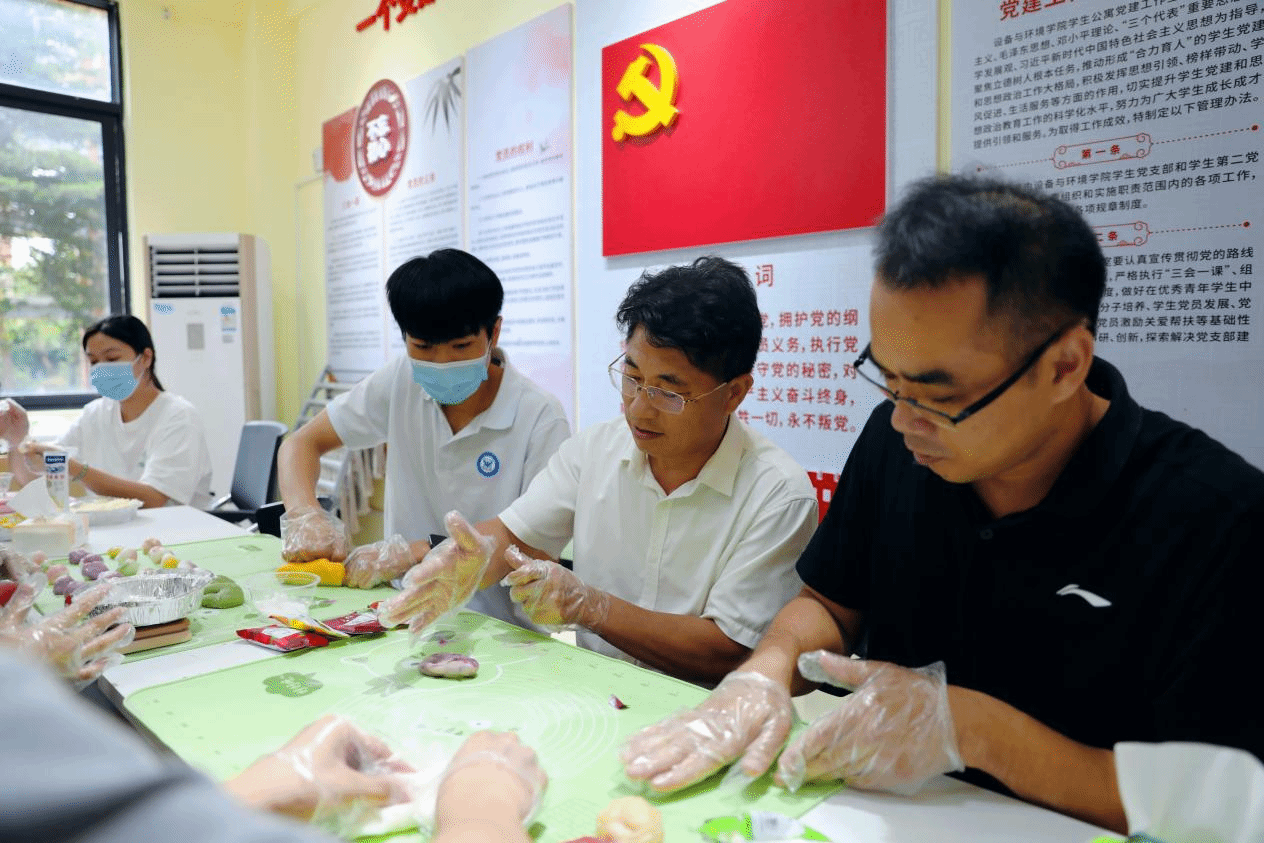 广西建院9月27日讯(设备与环境学院 文/冀旭月 图/杨贵维)金秋送爽,秋月将盈。9月26日下午,设备与环境学院学生第二党支部在学生公寓党建工作室开展了以“饼承心意邀明月 共享人间好时节”为主题的冰皮月饼DIY活动。学校副校长伍耿清、柏挺,设备与环境学院党总支书记侯文淑,党委学生工作部副部长杨海基、宿管科科长陆洪先,学生第二党支部全体党员老师以及20余名学生代表共同参加。活动中,设备学院梁媛老师现场教授同学们冰皮月饼的制作方法,...