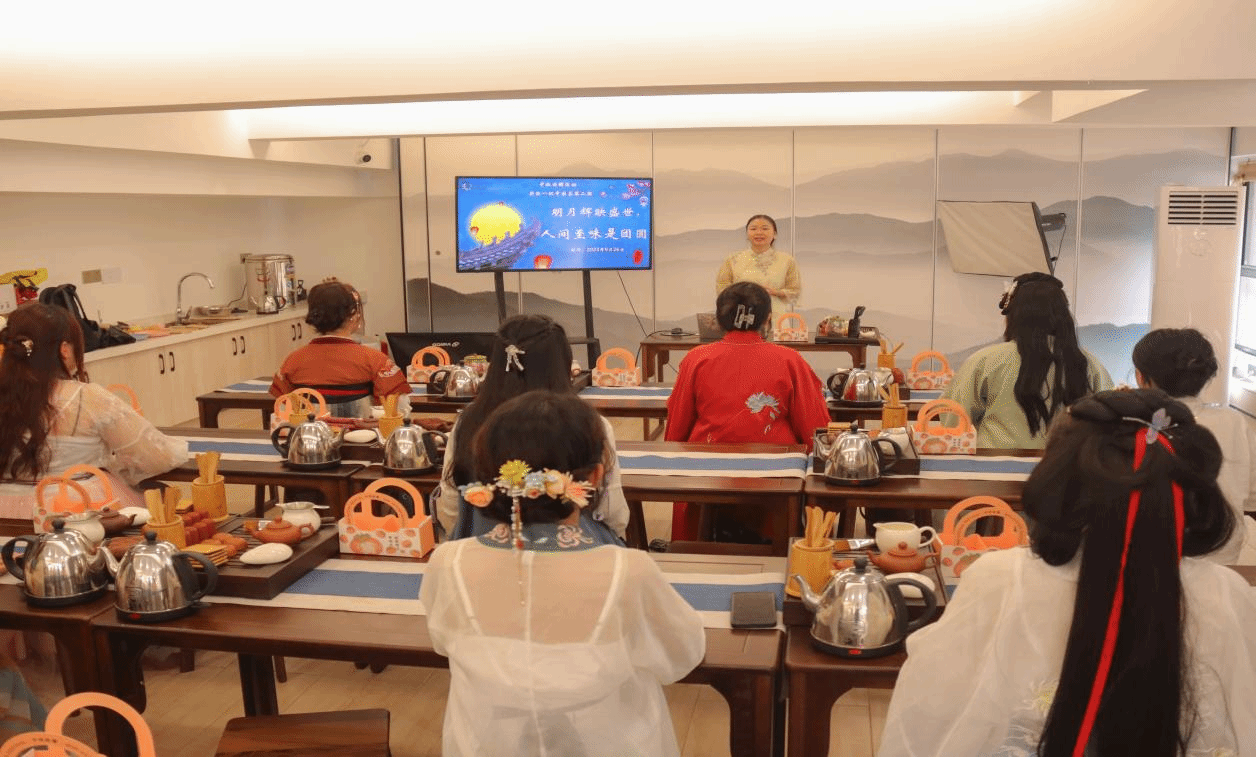 广西建院9月27日讯(管理工程学院 文/韦珍安 黄春 图/黄春)一轮明月当空照,一缕桂香满心房。9月26日下午,“一站式”学生社区茶艺文化传习基地开展中秋特辑活动,辅导员茶艺师韦珍安带领20位同学赏汉服文化、品中国茶、手作月饼。活动中,韦珍安老师向同学们介绍了中秋节的起源、发展历程、传统习俗,还介绍了月饼和茶的搭配习惯。甜口的月饼,比如莲蓉月饼、豆沙月饼、冰皮月饼,通常搭配绿茶。绿茶淡雅轻灵,能有效促进葡萄糖的代谢,...