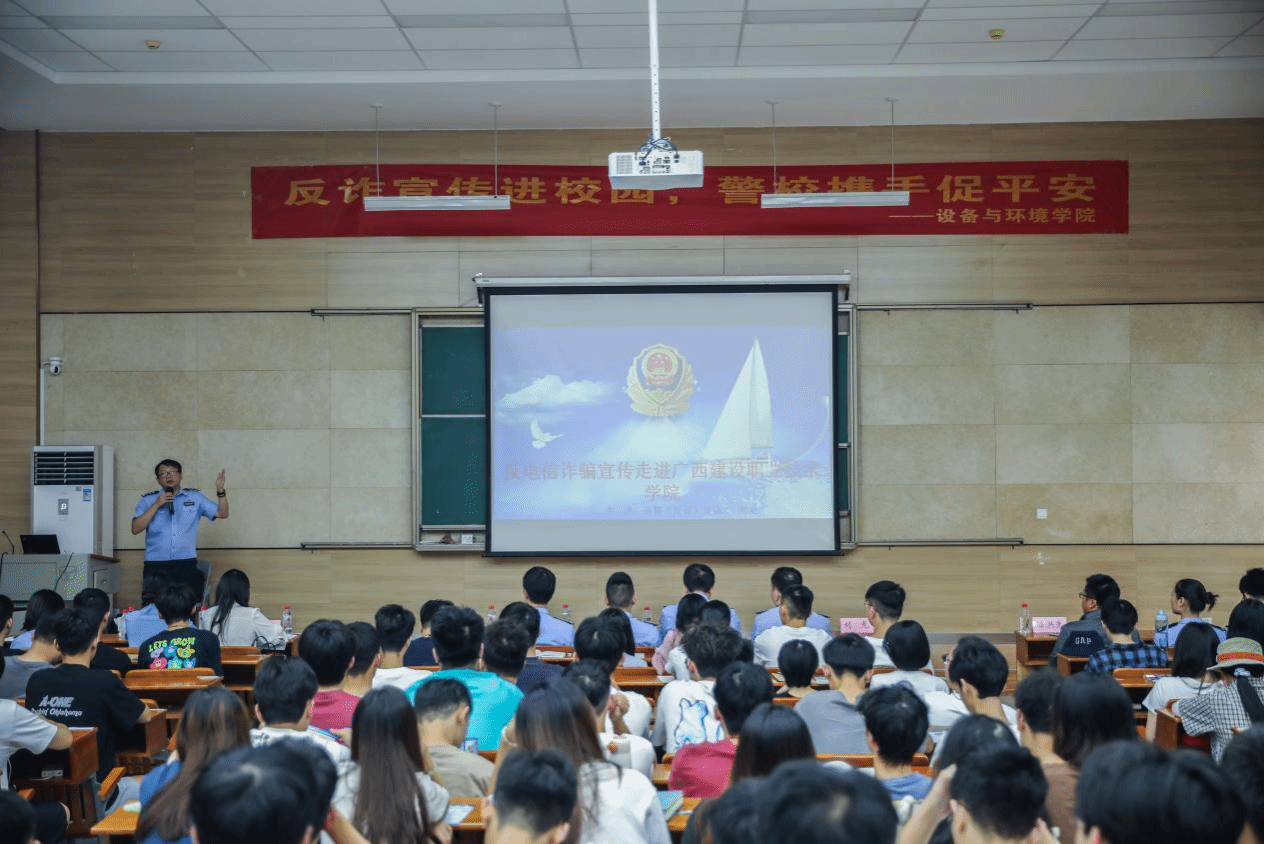 广西建院10月25日讯(设备与环境学院 文/廖红媛 银新月 图/毛森森)为进一步加大校园防诈骗宣传力度,增强学生防范电信诈骗意识,10月24日,学生社区安全协作中心、设备与环境学院学生公寓党建工作室联合组织开展“反诈宣传进校园,警校携手促平安”主题安全教育活动。南宁市公安局反诈支队及地铁分局西乡塘站派出所多名反诈宣传教官到OD(中国)一站式服务平台深入学生群体,开展校园反诈宣传教育活动,筑牢校园反诈“安全墙”。设备与环境学院党总支书记侯文淑、...