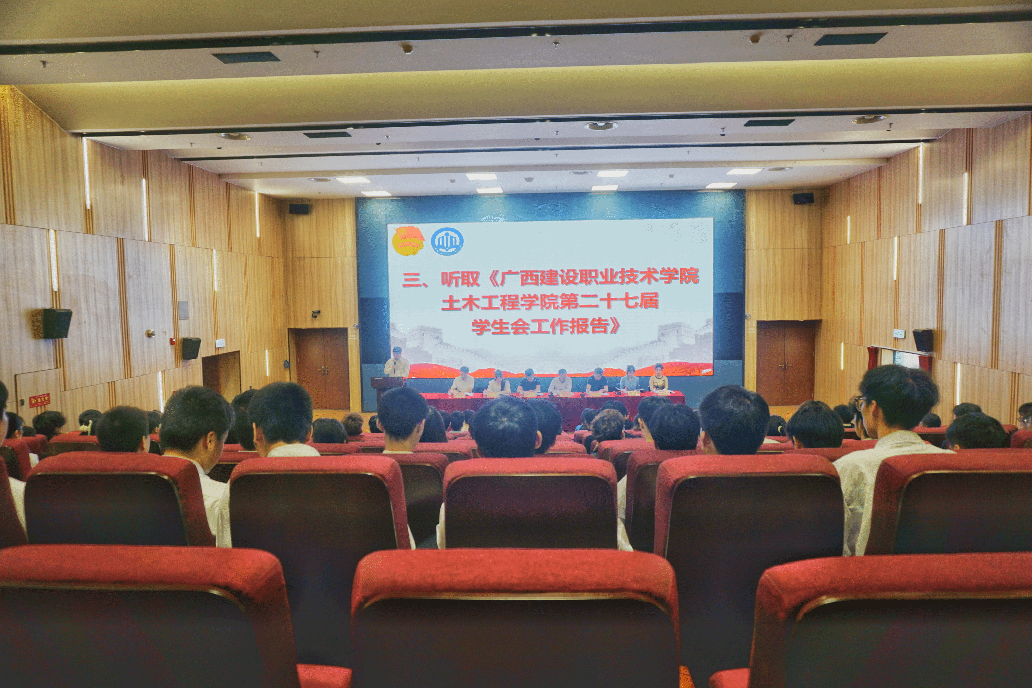 广西建院11月9日讯(土木工程学院讯 文/冯光帆 图/牟新仪 王海昕)近日,土木工程学院第二十八次学生代表大会在学校图书馆报告厅召开,校团委书记曾小贵,土木工程学院党总支书记孔祥刚、团总支书记冯光帆,管理工程学院团总支负责人封炫妃出席大会。土木工程学院全体辅导员、学校各学生组织代表以及大会正式代表152人参加会议。预备会议上,土木工程学院第二十八次学生代表听取并审议了大会筹备工作报告、代表资格审查报告、主席团候选名单以及正式会议议程。...