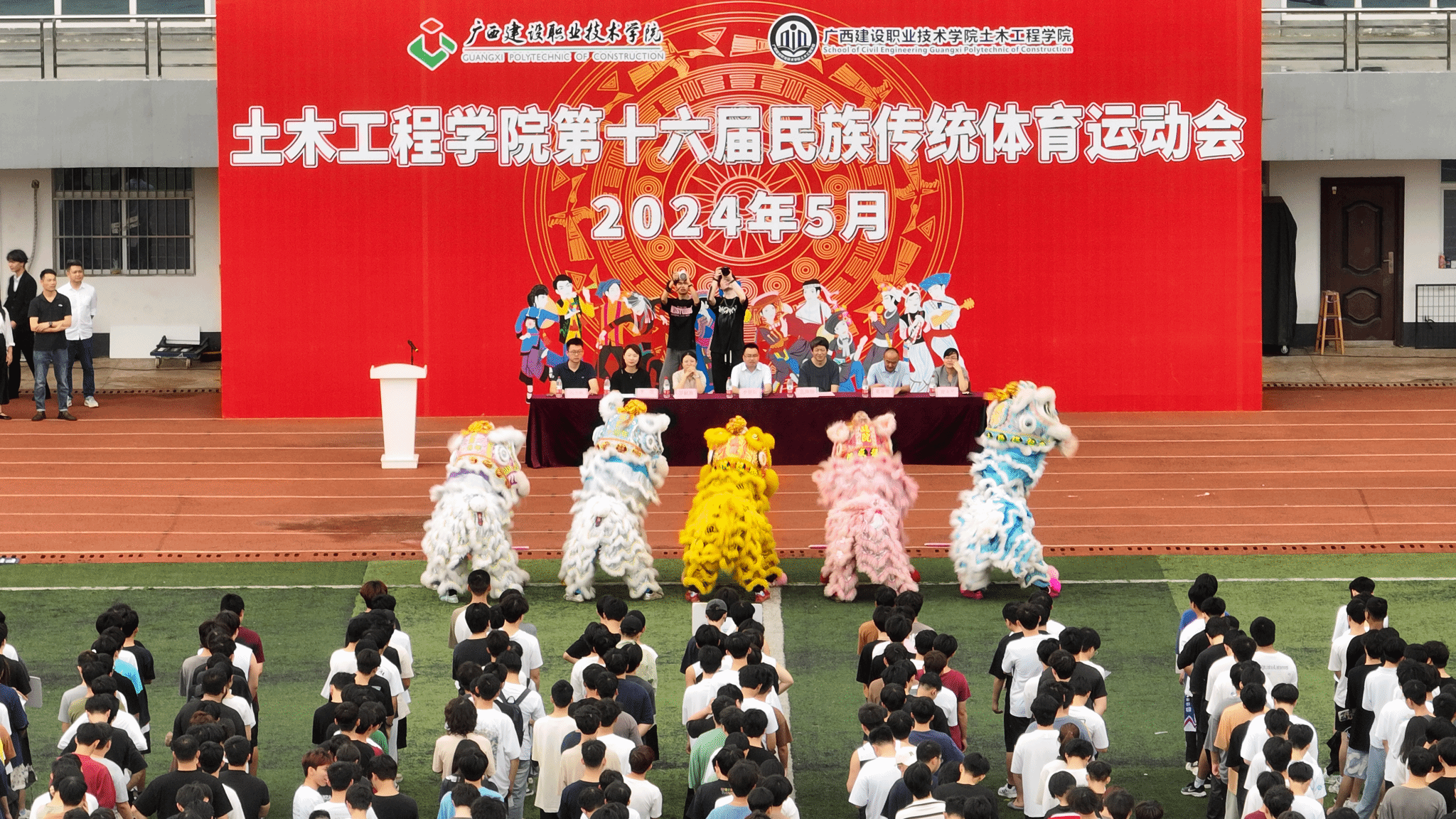 广西建院5月29日讯(土木工程学院 文/石明成 图/王海昕 黄健 韦景朝)为弘扬中华民族优秀传统文化,全面促进学生身心健康,5月28日下午,土木工程学院在学校田径场举办第十六届民族传统体育运动会开幕式。土木工程学院党总支书记孔祥刚,院长李朝阳,副院长葛春雷、罗献燕等学院领导出席,全体辅导员、班主任代表以及全体在校学生参加开幕式。开幕式现场本届民族运动会以“青春爱运动,健康强中国,民族一家亲,共筑中国梦”为主题,...