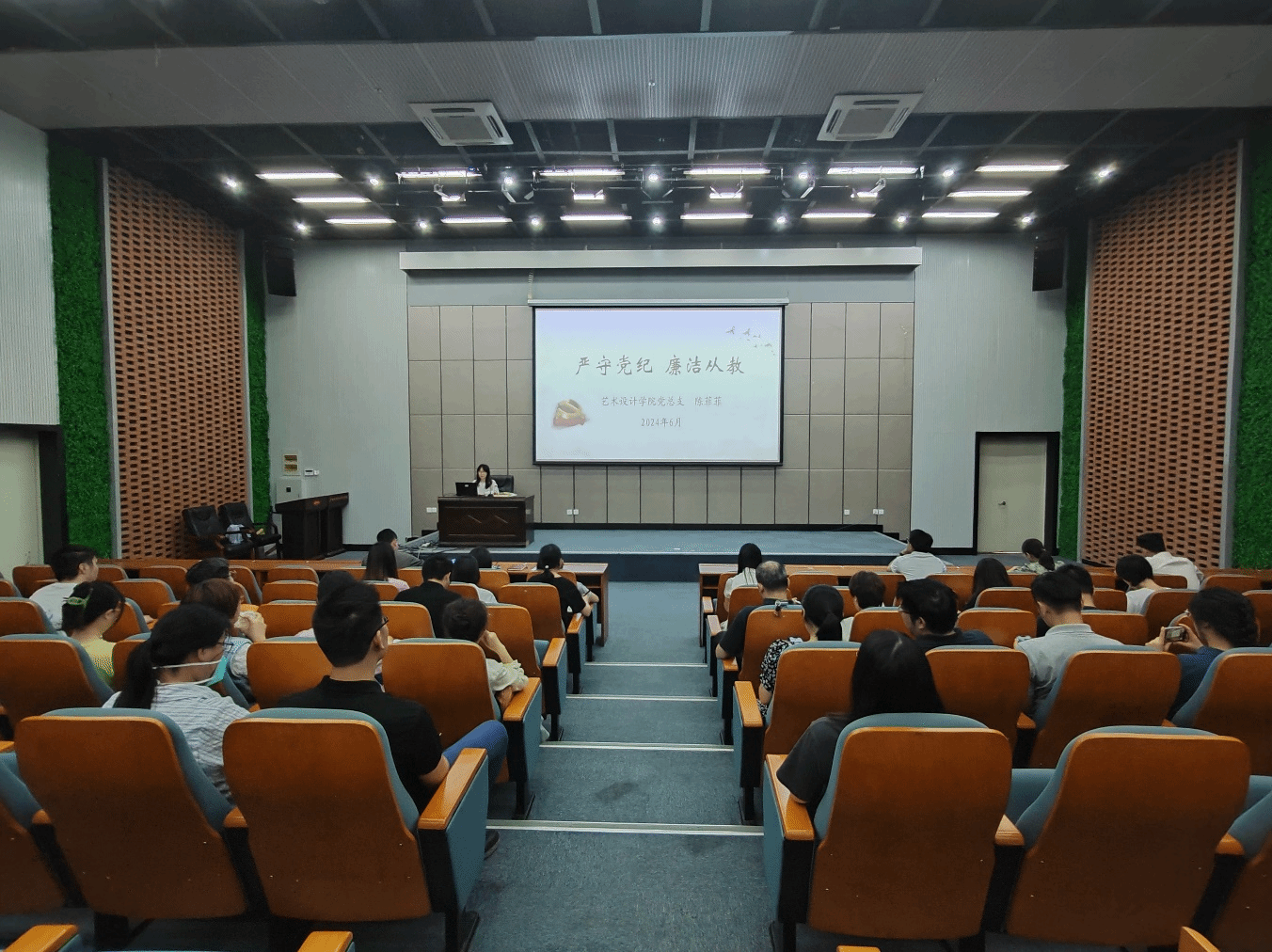 广西建院6月17日讯(艺术设计学院 陈昕)为深入开展党纪学习教育,引导党员们担当作为,切实将学习成果转化为推动学院高质量发展的强大动力,近日,艺术设计学院党总支书记陈菲菲以《严守党纪 廉洁从教》为题,在6号教学楼3楼报告厅为艺术设计学院全体教师党员讲授专题党课。陈菲菲书记对《中国共产党纪律处分条例》(以下简称《条例》)进行了解读,告诫全体党员要学纪、知纪、明纪、守纪,强调教师党员要结合工作实际,严守政治纪律、...