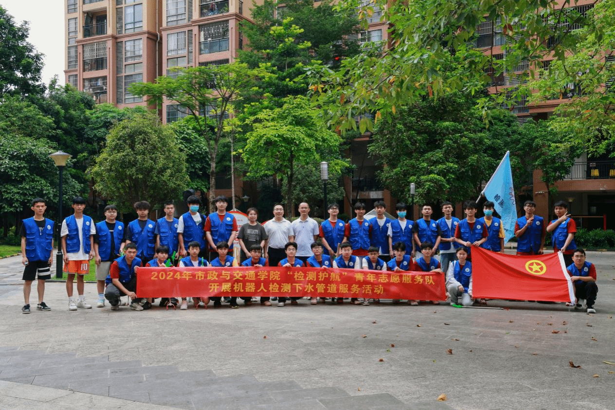 广西建院10月11日讯(市政与交通学院 文/何炎 罗宇珊 图/罗宇珊)近日,市政与交通学院副院长黄文珑带领“检测护航”志愿服务队赴南宁市相贤社区开展下水管道安全检测与社区清洁志愿服务活动。志愿者们以志愿行动赋能社区服务,提升居民生活环境。“检测护航”志愿服务团合影志愿服务的内容分为下水管道检测组和社区清洁组两大板块,同步在社区内推进志愿服务工作。下水管道安全检测组的志愿者们一到社区,迅速行动,在社区工作人员的指导下手持手电筒、...