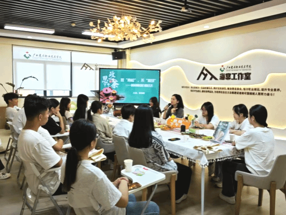 广西建院10月15日讯(管理工程学院 封炫妃 梁甜甜)平衡生活,学会放松。10月15日,管理工程学院在海棠工作室举办以“放‘青松’,不‘蕉绿’——解码情绪价值经济”为主题的思政下午茶活动。学院党总支副书记郭海棠老师与来自全校7个二级学院的22位同学面对面交流。活动上,主讲人郭海棠老师与同学们围绕“你焦虑吗”“你因何焦虑”“你怎样化解焦虑”等论题展开交流。同学们结合自身经历,讲述在学业、工作、生活、人际等方面的困惑和烦恼,...