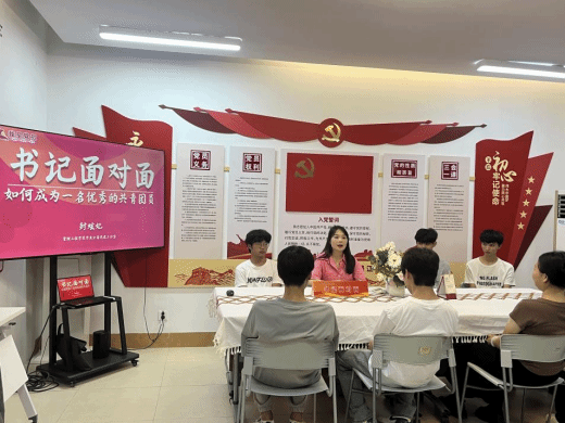 广西建院10月18日讯(管理工程学院 黄欣欣 梁甜甜)10月17日,管理工程学院在“红船精神”学生公寓党建工作室开展“书记面对面”活动,本期活动以“如何成为一名优秀的共青团员”为主题,学院团总支书记封炫妃与20名共青团员、入团积极分子面对面交流。 活动现场活动中,主讲人封炫妃老师与同学们围绕“共青团员的定义”“共青团员应具备的素质”“如何成为一名优秀的共青团员”依次展开讨论,同学们结合自身的认识,分享自己的看法。...