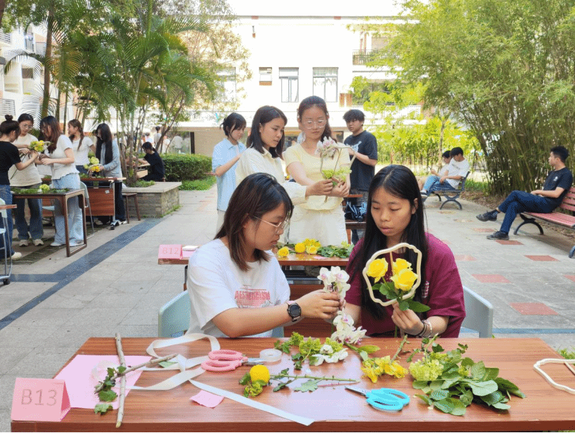 广西建院5月14日讯(管理工程学院 文/颜彦婷 李梦舅 图/宿管会 李晶晶)为丰富校园文化、提升学生艺术修养,5月14日下午,学校学生工作处宿管科与茶艺文化传习基地携手举办“花样青春,艺韵校园”花艺大赛,设置“夏日初立·万物生长”与“时光织锦·母爱如歌”两大主题,众多学生热情参与,校园内花艺创作氛围浓厚。比赛中,选手们各展所长。在“夏日初立·万物生长”主题区,他们以牛皮纸为背景、花泥塑山峦,用红玫瑰、水龙珠等花材展现夏季生机;...