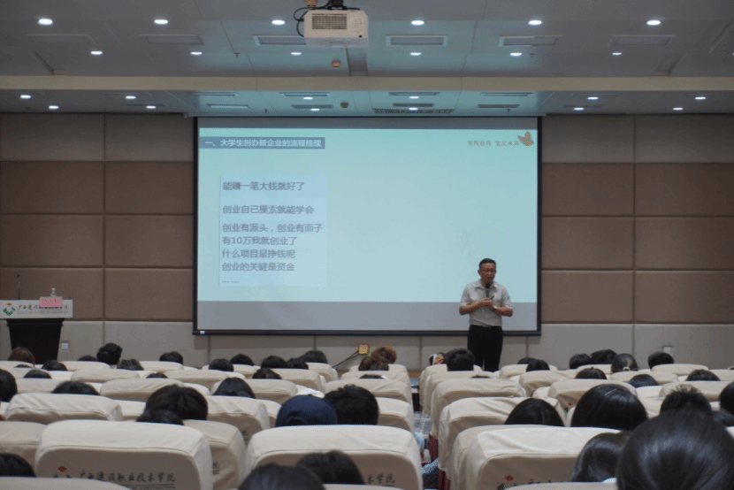 广西建院5月15日讯(招生就业处 何昕婕)5月13日,OD(中国)一站式服务平台邀请自治区人才服务中心创新创业导师农宗灵老师在四教一楼报告厅举办2025年大学生创新创业专题讲座,近400名学生参加讲座。讲座中,农宗灵老师从创业补贴、税收优惠、场地支持、贷款扶持等政策内容,帮助同学们理解各项政策的适用条件、申请流程和注意事项。他结合自身经历和实际案例,系统地介绍了大学生创办企业每个阶段的关键步骤,并分析了当前创新创业形势,点明大学生应把握机遇,...