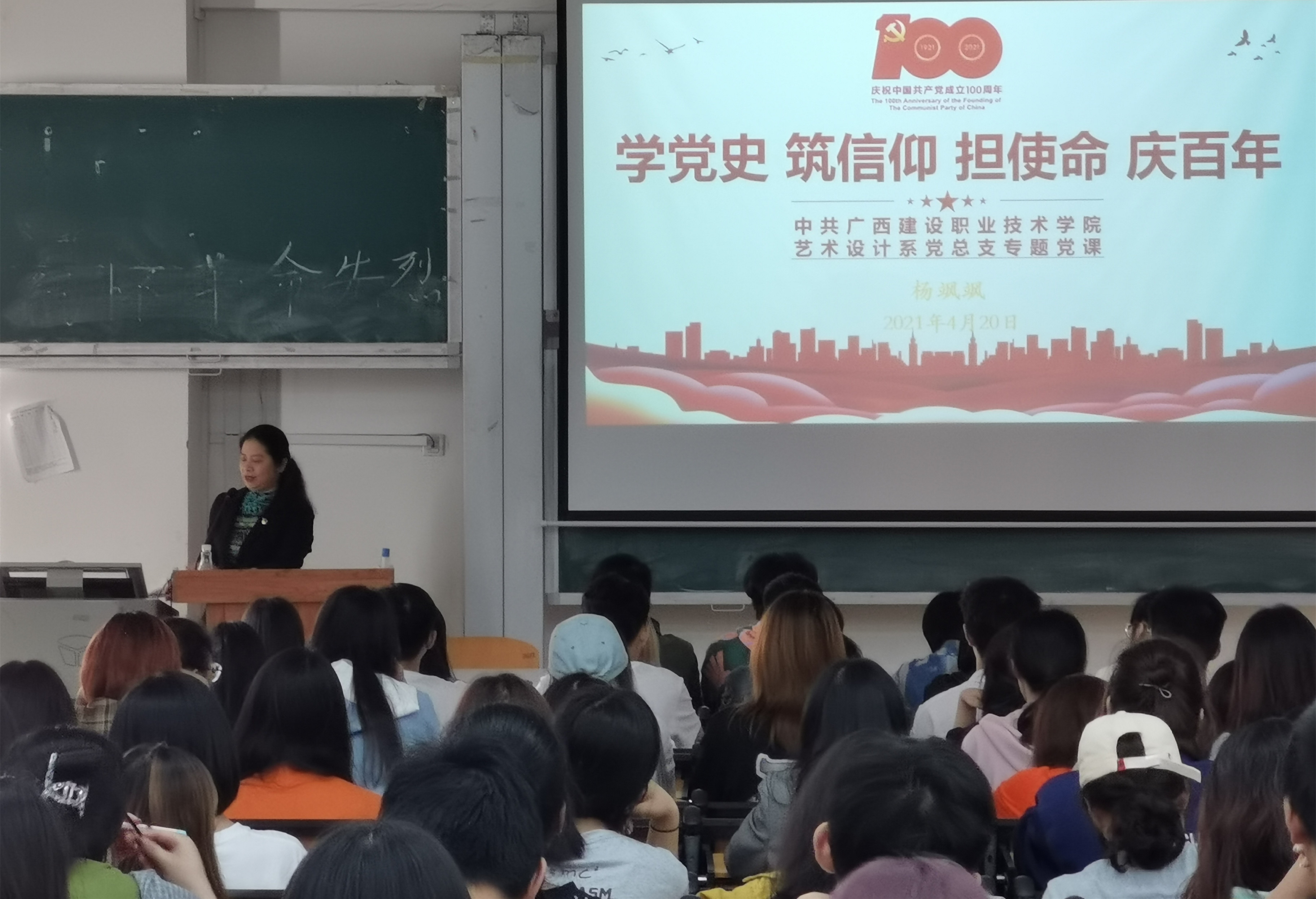 广西建院4月29日讯(艺术设计系 文/杜佩佩 图/陈昕)为深入学习贯彻习近平新时代中国特色社会主义思想,从党的百年历史中汲取继续前进的智慧和力量,4月20日下午,艺术设计系党总支在2教301室开展了题为“学党史 筑信...