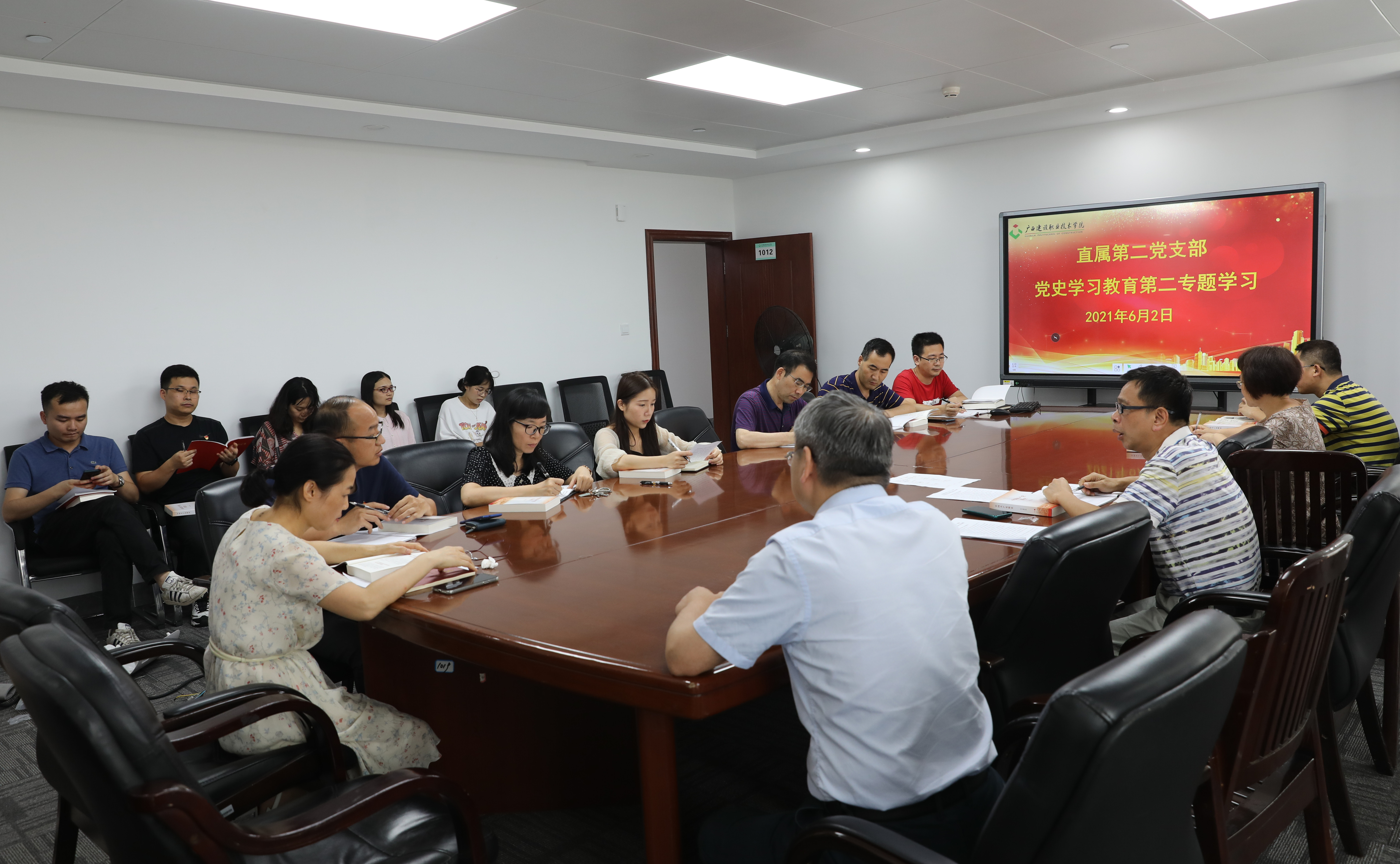 广西建院6月2日讯(党委宣传部 陈熙)6月2日下午,直属第二党支部在行政楼1012会议室开展了党史学习教育第二专题学习,支部书记庞松鹤主持学习会,支部全体党员参加学习。本次学习主题为新民主主义革命时期历史。 会...